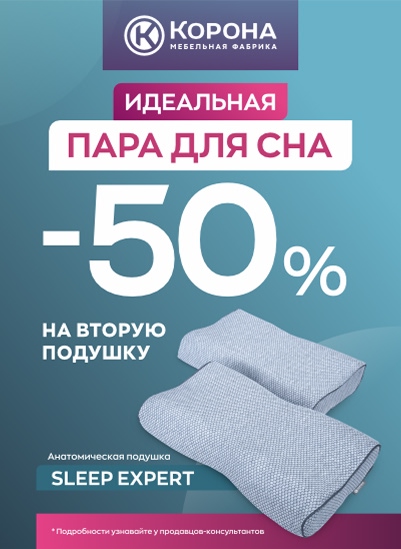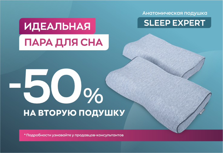 Скидка 50% от РРЦ на 2-ю подушку «Sleep Expert» 57*37*11 при покупке в одном чеке с 01.11.25 - 30.11.2025 г.